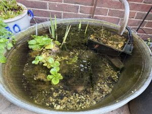 En zo blijf je lekker bezig en hopen we dit jaar weer te genieten van een mooie levendige vijver.